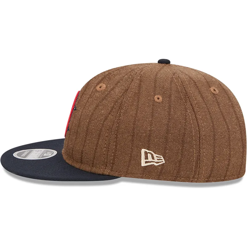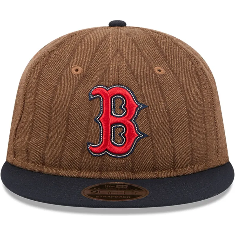Casquette plate marron et bleue marine ajustable 9FIFTY Retro Crown Wool Pinstripe Boston Red Sox MLB New Era